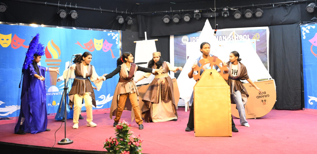 The celebration continued with the much-anticipated Inter-House Drama Contest, where talented performers brought iconic scenes from Shakespeare’s plays to life. The audience was captivated by the students’ eloquence, strong memorisation, and theatrical brilliance. A total of eight teams competed—four each from the Boys’ and Girls’ Sections. In the Boys’ Section, Green House claimed first place, followed by Yellow House in second. In the Girls’ Section, Blue House secured the top position, with Green House placing second. Abdur Rahman of Class 10 E was declared Best Actor, while Hishana Manoj received the Best Actress award. The second half of the programme was hosted with grace and confidence by Afreen Salma and Fiya Amrin of Class 12.